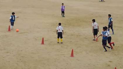ドリブル・パス等の基本的な技術の習得と同時に、ゲームを通して、どこに動けばいいかなどを身につけます。