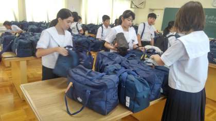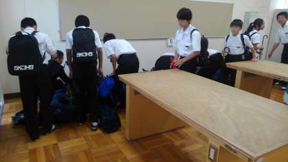 出発前の行動ですが、ほぼ全員が時間通りに荷物を被服室に置くことができました。