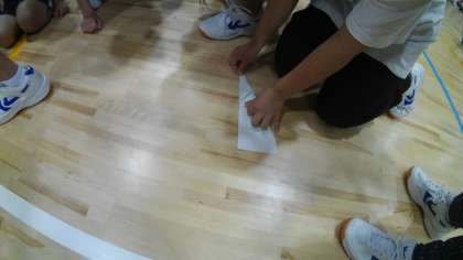 紙飛行機製作中です。