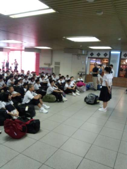 無事集合が終わりました。出発式も終わりまもなくホームに移動です。