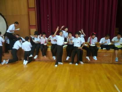 外で食べる予定でしたが、小雨が降ってきたため、体育館の中でいただきます。