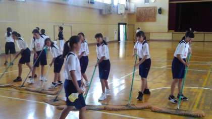 体育館床のモップかけです。