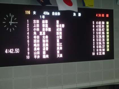 速報 400m自由形 2位