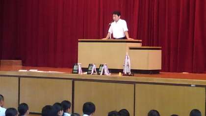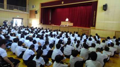 蒸し暑くて集中しにくい環境でしたが、全学年の生徒たちはしっかりと話を聞くことができていました。