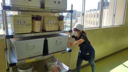 業者の方、ボランティアさん、教職員が協力して運びます。