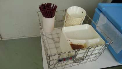 食器等をまとめて配膳室に返却します。