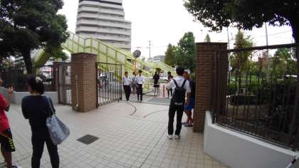 登校は正門です