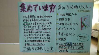 岡山県倉敷吉備町の小学校に文具セットを送ります。