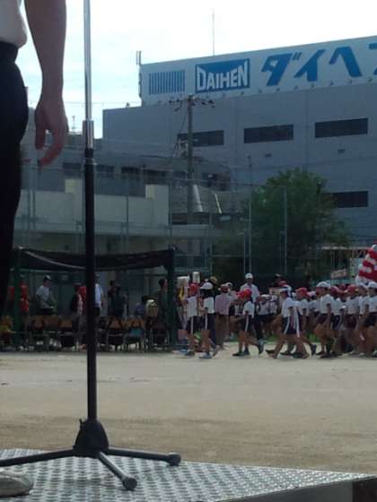 今日は田川小学校の運動会です。好天のなか入場行進が始まりました。