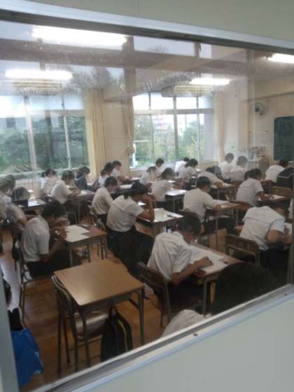 今日は3年生の統一テストです。みんな一生懸命頑張っています。