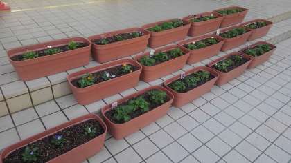 PTAの皆さんが花の植え込み作業をしてくださいました。