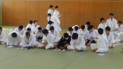 生徒も仲間の技の評価をして