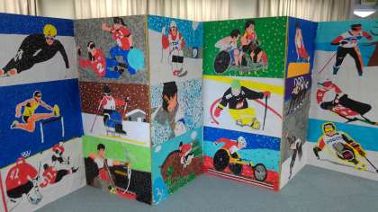 各クラス6作品合計36枚の作品をまとめた屏風絵となりました。