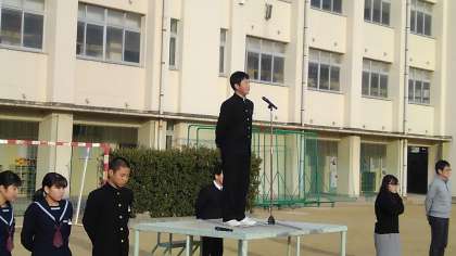生徒会会長の集合指揮の様子です。