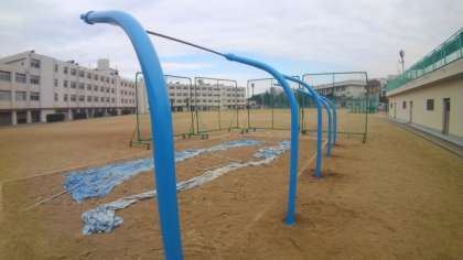 管理作業員さんが鉄棒の塗装をしてくださいました。
