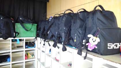 体育館入口靴箱上のカバンです。