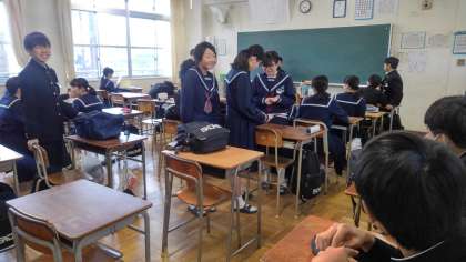 2年4組林学級朝学活前の様子です。
