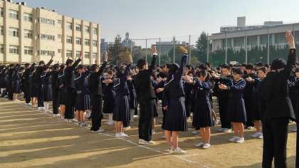 生徒会会長池田くん指揮です。