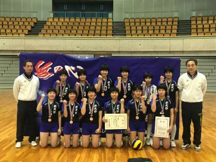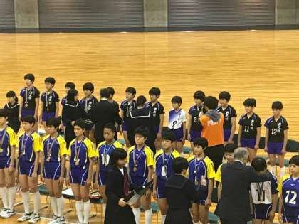 一人一人に大きなメダルを首からかけてもらい、感無量な新北野バレーボール部の選手たちでした。