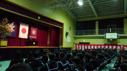 「私たち212名は、今ここに新北野中学校の生徒として自覚と誇りをもって行動することを決意します」