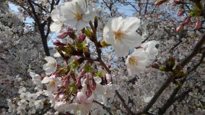 八〜九分咲きです。明日には満開になるでしょう。