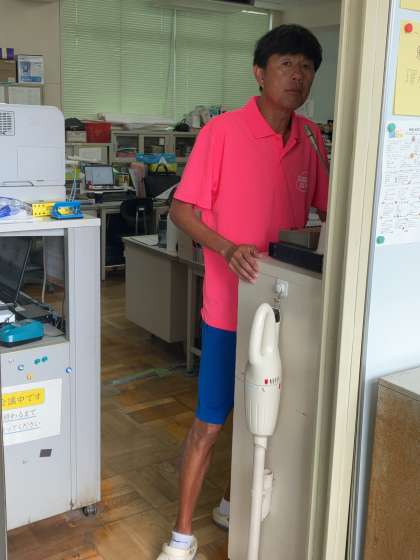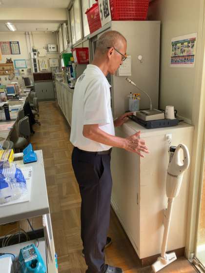 今日も朝から30度を超える暑さでしたので、放送にて全校集会を行いました。