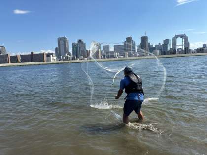 指標生物の種類(ヤマトシジミやイシマキガイ)から、淀川は水質階級2の「ややきれいな水」と考えられます。昔に比べ綺麗になっているとのことです。ウナギやスズキ、モクズガニを捕まえることもできました。