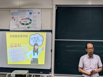大阪高校、桜和高校、昇陽高校、常翔学園高校、宣真高校、箕面学園高校の先生方に来ていただきました。計11の講座に分かれて授業を受けました。