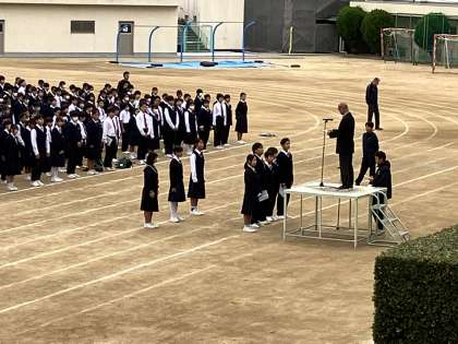 全校集会で、後期生徒会・学級役員の認証式を行いました。