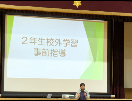 5時間目、2年生は今週金曜日に実施する神戸方面への校外学習事前指導を行いました。