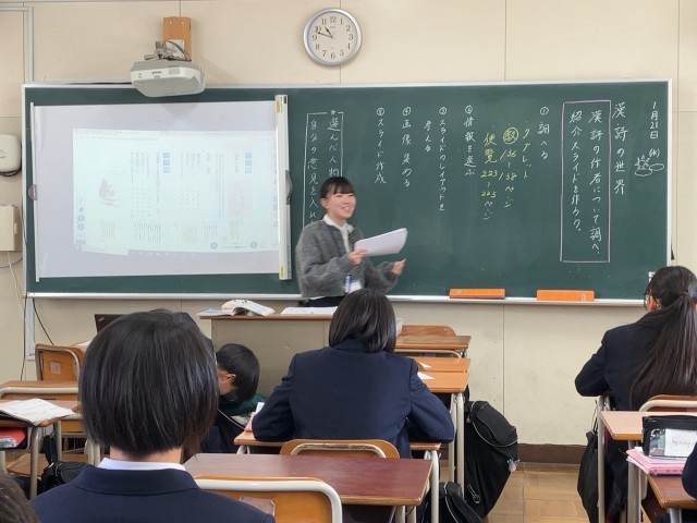 本日、大阪市総合教育センターよりスクールアドバイザーをお招きし、3年生社会科と2年生国語科の研究授業を行いました。