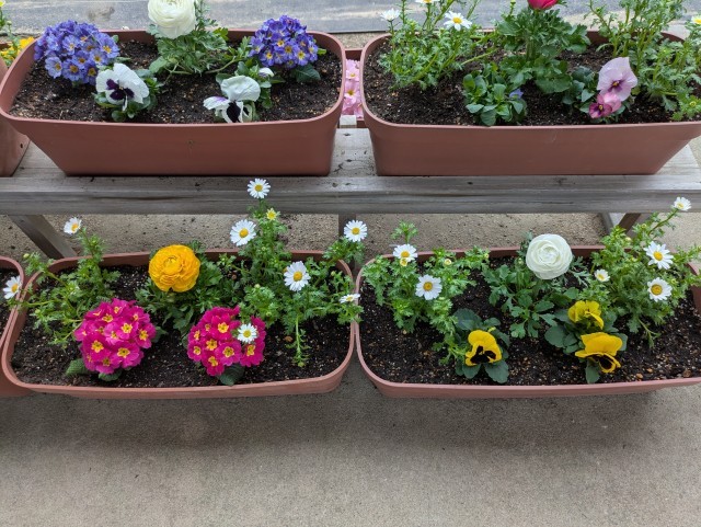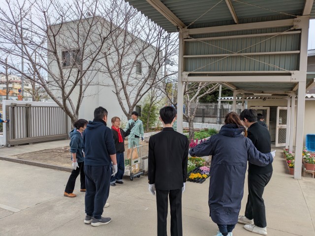 本日、学年末テスト終了後、学校元気アップボランティア、保護者の皆様、ボランティア部の生徒の皆さんで、卒業式や入学式で飾る花をプランターに植えました。