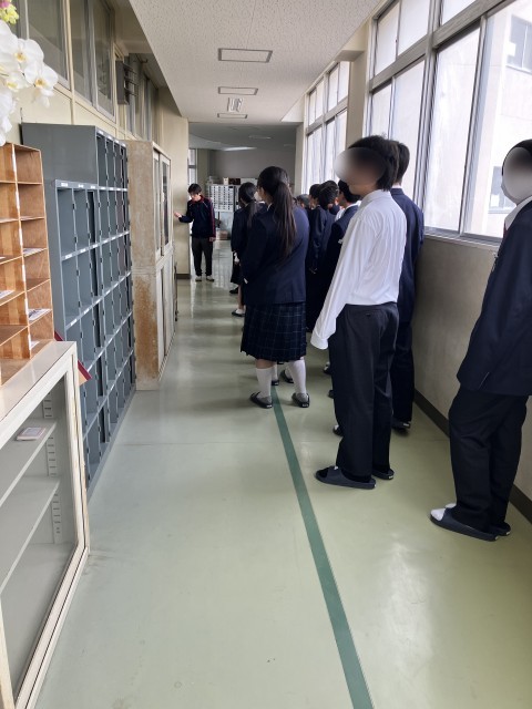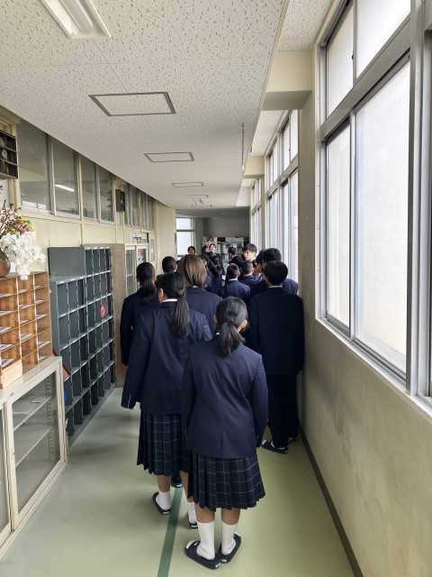 1年生は、オリエンテーションの一環で校舎内を見学しました。小学校との規模の違いに驚いていました。