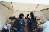 小学生や幼稚園の子どもたちも参加していました。消防車の前で、消防服を着て記念撮...