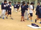 グランド 前半練習です。 ウォーミングアップを 全体で行っています。