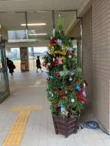 正面玄関にクリスマスツリーとクリスマスリースが飾ってあります。