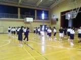 体育館では、バスケットボール部が練習をしています。1年生はドリブルやパスの練習...