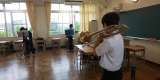 音楽は歌のテストをしています。 歌うのはもちろん校歌! 緊張しながら廊下で待ち...