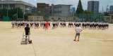 3,4時間目、体育大会に向けて マスゲームの練習をしました。 暑い中でしたがみ...