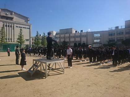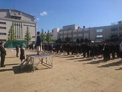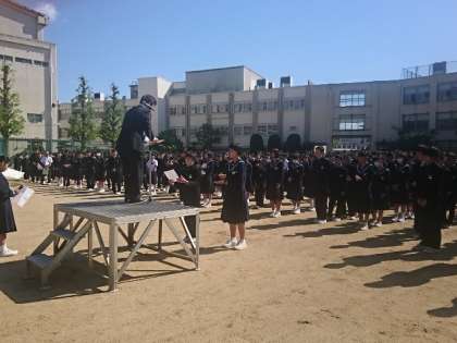 連休明けの初日が全校集会でした。生徒たちは遅れずに整列し滞りなく集会を行うことができました。校長先生より、10日間もあった連休なので学校生活のリズムを早く取り戻すことと、元号が令和に変わったことのお話がありました。