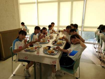 カッター訓練、ハイキングで疲れて食欲旺盛です。