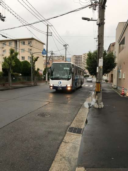 現地出発の時間が遅れたことや渋滞もあり、バスの到着は遅くなりましたが、無事到着しました。小雨が降る中、中学校へ移動しました。