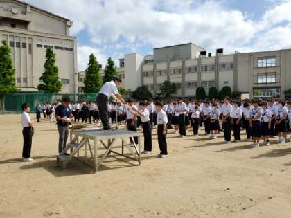校長先生より、全校集会を行う意味についてお話がありました。全校集会は、校長先生からの講話や他の先生、生徒会などからお話を全校生徒皆さんへ連絡します。それ以外に、全校集会は、緊急時に全校生徒が集まりますが、その時にすぐに集合し、人員確認をする訓練を毎週している事でもあります。