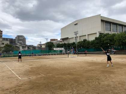 7月6日に吹田高校で中学校交流戦ソフトテニス大会が行われ、AチームとBチームのリーグに分かれて試合をしました。
