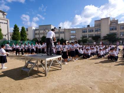 校長先生より、先週の台風15号の被害で千葉県では7万戸が現在でも電気が復旧していない話がありました。昨年、大阪でも台風の被害で3日間電気が使えないで地域がありました。電気が使えないことが、大変なことを経験していますが、復旧すれば災害のことを忘れてしまいがちです。