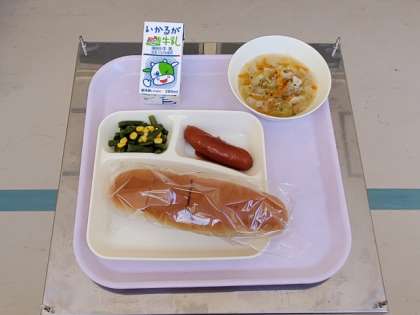 今日の給食の献立は、「フランクフルトのケチャップソース」です。