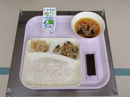 今日の給食の献立は、「鶏肉のごまだれ焼き」「ソーキ汁」です。