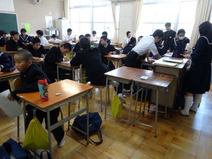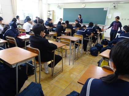 生徒議会は、各クラスの代表の委員長が集まり、最近のクラスの様子を発表した後に学年ごとに話し合いをするというかたちで進めています。