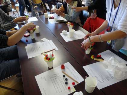 PTA成人教育委員会では、毎年文化祭への作品制作もかねて、この時期に様々な取り組みを実施してきました。本年度は、10月18日(土)に、中学校の多目的室で、食品サンプルの製作体験会が催されました。講師の森野さまのユーモアあふれる説明で、集まった30人余りの保護者の皆さんも和気あいあいと楽しく作業を進めていきました。出来上がった作品は、24日の文化祭に出品されますので、ぜひうご覧ください。「楽しいPTA活動」をスローガンとする三国中学校PTAの取り組みの1ページでした。