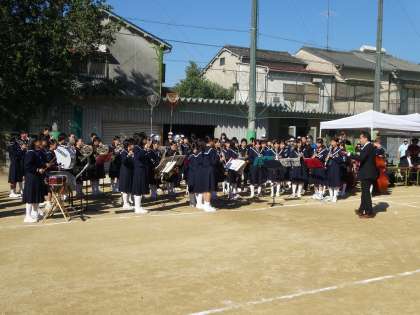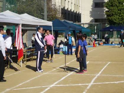 晴天に恵まれた10月19日(日)三国地区の連合運動会が、三国中学校で行われました。前日、早朝より役員のみなさんが準備をし、地域のみなさんが参加する、地域恒例の運動会です。今年は三国中学校の吹奏楽部のファンファーレで始まり、開会前言、選手宣誓、全員体操と続いていきました。地域の運動会とあって、お年寄りからちびっ子まで、多くの世代の方々が真剣に競技に挑んでいました。今では大阪市内でも地域で運動会を実施するところは珍しくなっていますが、三国地域では、地域の団結と協調を示す素晴らしい行事となっています。